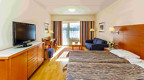 Located on Ruissalo Island in the Archipelago Sea, this spa hotel is a 15-minute drive from central Turku. It offers sea and forest views as well as free sauna and pool access. Ruissalo Marina is right next to the hotel. Ruissalo Spa Hotel’s rooms feature guest bathrobes, wooden floors and modern bathrooms. All rooms have a seating area and TV. Leisure facilities include 3 indoor pools, 2 saunas and an exercise room. Spa services include hot stone massages and mineral baths. The Merisali restaurant offers Scandinavian specialties, buffet and á la carte options and dance nights. Spa Hotel Ruissalo’s lobby café opens out onto the terrace in summer. Guests can rent bicycles and explore the surrounding nature. During winter, skis and snowshoes are available for hire. Buses with connections to central Turku stop right outside the hotel. Aura Golf Center is a 0.6 mi away.