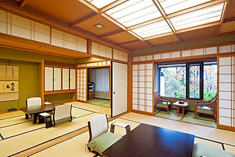 This suite's standout features are the private open-air bath and spa bath. This suite includes 1 living room, 1 separate bedroom and 1 bathroom with a hairdryer and free toiletries. The air-conditioned suite offers a flat-screen TV with satellite channels, a wardrobe, a safe deposit box, an electric kettle as well as garden views. The unit has 2 beds and 3 futons.