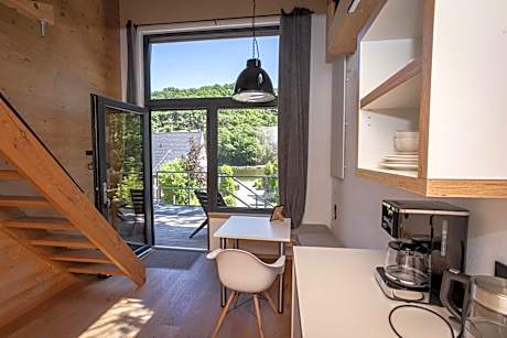 Featuring a private entrance, this chalet consists of 1 living room, 1 separate bedroom and 1 bathroom with a shower and a hairdryer. Guests can make meals in the kitchenette that is equipped with a stovetop, a refrigerator, kitchenware and a microwave. The chalet features a coffee machine, a seating area, a wardrobe as well as a terrace with river views. The unit offers 1 bed and 1 futon.