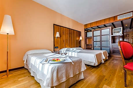 The 4-star Hotel Doña Brígida -Salamanca Forum is set in the Vega de Salamanca development, between Villamayor and Salamanca. It has a well-equipped spa and free Wi-Fi in all areas. Located on the banks of the River Tormes, Hotel Doña Brígida lies just yards from the Villamayor Golf Course. The swimming pool is open from mid June to the beginning of September. Each of the rooms at Doña Brígida have seasonal air conditioning and heating. All feature a private bathroom with amenities. Guests can relax in the sauna, hot tub and Turkish bath at the Salamanca Forum for a supplement. A fitness center and swimming pool are available and free of charge. The establishment has a cafeteria and a restaurant that offers Spanish cuisine and modern international options There are spacious facilities for meetings and celebrations.