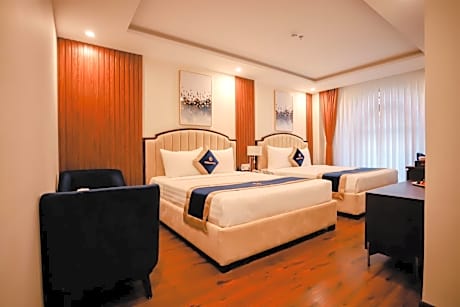 Featuring free toiletries and bathrobes, this triple room includes a private bathroom with a shower, a hairdryer and slippers. The spacious air-conditioned triple room features a flat-screen TV with cable channels, soundproof walls, a mini-bar, a wardrobe as well as city views. The unit has 2 beds.