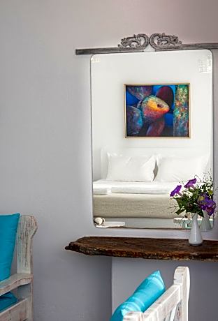 Scorpios Hotel & Suites are open and ready to welcome you all year round. We offer relaxing and care free stay, weather it be for business or pleasure. A small but cute hotel, offering 10 deluxe suites and 4 apartments, located out of Samos Town in a quiet residential area of Kalami, it is both close to the town for those who wish (15-20mins walk) and secluded enough for those who wish to escape. Fabulous location, exotic gardens and uninterrupted sea views that will leave you breathless. Deluxe suites are also equipped with an office area, wi-fi and wired internet, and a well-equipped small kitchen (without oven) for the preparation of cold plates. All 4 apartments have a fully equipped kitchen with oven. Within the garden is a large swimming pool with panoramic sea views, free sunbeds and fresh pool towels daily. Breakfast is served every day on the terrace, overlooking the pool. The menu changes daily and offers traditional Greek recipes using only local fresh and organic produce. Vegan and vegetarian options are available. The large bright and fully renovated rooms were constructed according to traditional Samian architecture, using material of stone wood and glass. The Hotel also features its own art gallery. The Delta Art Gallery houses a large collection of small and large artworks by local artists and a gallery shop where you can purchase small gifts and hand made goods. The gallery also hosts two workshops for art courses in: 1- Painting on silk 2- Merino silk painting (felt technique) This way guests can enjoy a creative retreat with a relaxing vacation. The Scorpios Hotel & Suites is located 9.3 mi from Samos airport, 1.2 mi from the old port and 3.1 mi from the new port. Beaches Gangou and Lakka are located 10-15mins walk away. There is also a free car park for our guests. License Number(s): 1083687