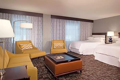 Dit hotel in Arlington, Texas, ligt op 30 minuten rijden van het centrum van Dallas. Het Sheraton Arlington Hotel biedt gasten de keuze uit een continentaal ontbijt of een ontbijtbuffet. Gasten kunnen gebruikmaken van de fitnessruimte of zwemmen in het buitenzwembad. Gasten van het Sheraton Hotel Arlington kunnen dineren in The Parkside Grille, waar gerechten uit het zuidwesten en de VS worden geserveerd. De Parkside Bar biedt drankjes en hapjes. Gasten kunnen een snack en koffie krijgen op de Market Place in de lobby. De kamers van het Sheraton Arlington zijn voorzien van een flatscreen-tv met kabelzenders. Ze zijn uitgerust met een koffiezetapparaat en strijkfaciliteiten. Het Sheraton Arlington Hotel ligt op 5 minuten rijden van pretpark Six Flags over Texas. Het hotel ligt op 3 minuten lopen van het Arlington Convention Center.