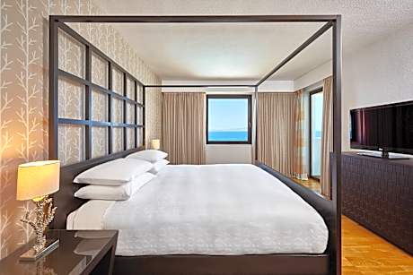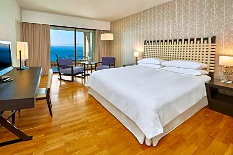 Overlooking Ixia Beach, the 5-star Sheraton Rhodes is located 2.5 mi from Rhodes’s Medieval Town. It features 4 indoor and outdoor pools and a fully-equipped fitness center. Four gourmet restaurants, a lounge bar and a pool bar are also available. All air-conditioned rooms at Resort Sheraton Rhodes offer a furnished balcony with views to the Aegean Sea or to the mountains and gardens. Each unit is equipped with a satellite LCD TV and a fridge. Marble bathrooms are stocked with bathrobes and luxury amenities. Buffet breakfast and dinner is served at the relaxing setting of Castellania Restaurant. Mediterraneo Restaurant serves dishes close to the pool, while there is also an Italian-inspired restaurant. Overlooking the Aegean Sea, Thèa Restaurant offers Greek cuisine with local ingredients. Guests can relax at the poolside bar enjoying cocktails and refreshing soft drinks. Sports facilities include squash, tennis and basketball courts. The children’s club offers organized activities with an entertainment team. Rhodes Town, a UNESCO World Heritage Site, offers many entertainment options. Rhodes Diagoras International Airport is at 9.3 mi. Free private parking is available on site.