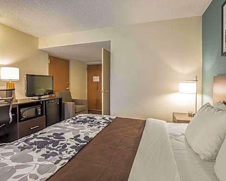 The Sleep Inn Greensboro Airport hotel is located off Interstate 40, 6.4 k from the Piedmont Triad International Airport. Guests can start their day with a complimentary continental breakfast, then take a refreshing dip in the outdoor pool. Free airport transportation is provided. All guest rooms include a flat-screen TV and work desk. A coffee maker, microwave, and small refrigerator are provided as well. This hotel provides business travelers with free wireless high-speed Internet access in all rooms, two-line speakerphones, voice mail, and access to copy and fax services. Free local calls, weekday newspaper, and coffee in the lobby are provided. Laundry services are offered for an additional fee. Shopping and dining is offered at the Four Seasons Town Center, which is 8 mi from the property. High Point University is a 15 minutes' drive away. The Joseph S. Koury Convention Center is 9.1 mi from Sleep Inn Greensboro Airport Greensboro.