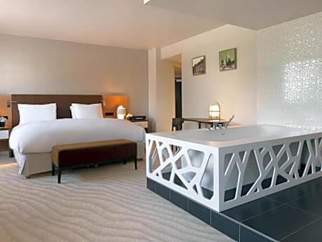 Experience luxury with a French twist in this 5-star hotel, ideally located near the center of Luxembourg, within walking distance from embassies and major multinational companies. Guests benefit from free WiFi throughout the hotel. A bar and a restaurant is included, and a complimentary mini-bar is provided in all rooms. All are also fitted with a coffee machine and a selection of coffee. Overlooking the Alzette and Petrusse Valleys, the luxurious Sofitel Luxembourg le Grand Ducal offers a unique viewpoint on the heart of the capital. On the top floor of the hotel is a high-class restaurant, serving gourmet cuisine prepared by Sebastien Perrot. The hotel is located in the new Espace Petrusse urban complex, within walking distance of the historic UNESCO World Heritage area and near the train station served by the new high-speed TGV train Est Européen. It is also close to the major multinational companies, ministries, luxury boutiques and main sightseeing areas of Luxembourg.