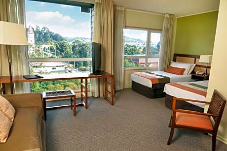Solace Hotel is located in a green area of Puerto Varas, 1969 feet from the Llanquihue Lake shores. It provides rooms with panoramic views of the Osorno and Calbuco Volcanoes or city views including the famous church of Puerto Varas. Each spacious guest room at the Solace includes a seating area equipped with cable TV channels. There is a sofa, a work desk and a laptop safe. A fusion of local and international dishes served at the restaurant of the hotel. Guests can also discover the many cafes in central Puerto Varas, a 10-minute walk away, serving traditional German pastries. Other facilities of the Solace Hotel include a free internet hotspot and an airport shuttle service. Free private parking is also available on site.
