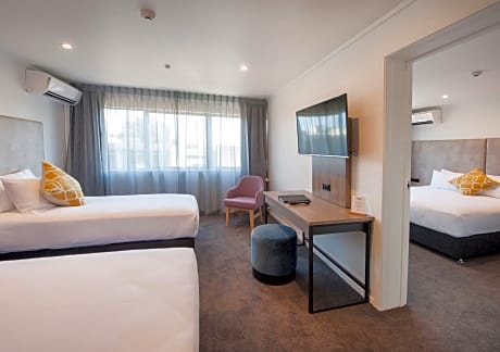 Located on the shores of Lake Rotorua, the 4 star Sudima Lake Rotorua is adjacent to the famous Polynesian spa. Just an 11-minute walk from the Energy Events Center, the property features free, unlimited WiFi and free on site parking. The hotel has an outdoor pool. The hotel is a 10-minute drive from the Skyline Rotorua. Sudima Lake Rotorua offers 247 well appointed guest rooms including LCD TVs with satellite channels, tea and coffee making facilities, 24/7 front desk service and ceiling fans. Air conditioning and heating are provided for all rooms. Room service is available 7am-9pm Guests can dine at the Okareka Restaurant open for breakfast and all day dining, featuring international cuisines and New Zealand wines. Enjoy a drink Okareka Bar with its striking view over lake Rotorua. The fully accessible hotel has Maori cultural shows and a token operated guest laundry. Rotorua Airport is located is a 12-minute drive from Sudima Hotel Lake Rotorua.
