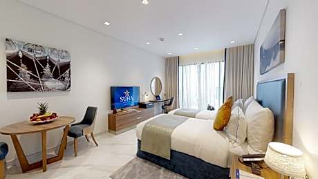Experience an abundance of unparalleled facilities and features at Suha Mina Rashid Hotel Apartments. Maintain seamless communication using the complimentary Wi-Fi at serviced apartment.Car hire offerings at the serviced apartment enhance the ease of discovering Dubai.For visitors traveling by automobile, complimentary parking is available.During your stay at this fantastic serviced apartment, the attentive front desk personnel can provide you with a range of amenities such as concierge service and safety deposit boxes. Obtaining passes for the town's top entertainments becomes effortless with serviced apartment's tours.At the serviced apartment, utilize the on-site dry cleaning service and laundry service to maintain your beloved travel attire fresh, allowing you to bring fewer clothes.During leisurely days and evenings, on-site amenities such as daily housekeeping enable you to fully enjoy your accommodation.For all your minor, last-minute requirements, the convenience stores can promptly cater to them, eliminating the need to venture out. Kindly note that smoking is prohibited in the serviced apartment to ensure fresher air for all visitors. At Suha Mina Rashid Hotel Apartments, every guestroom is provided with convenient amenities and fittings to ensure a comfortable stay. Enhance your experience at serviced apartment with the knowledge that certain rooms are equipped with linen service, blackout curtains and air conditioning for your convenience.A few accommodations within Suha Mina Rashid Hotel Apartments offer unique design elements such as a separate living room.Certain rooms boast in-room amusement features such as television and cable TV, offering guests an enjoyable stay. In select rooms within the serviced apartment, a refrigerator and bottled water is available to cater to your requirements when desired. It is worth noting that certain guest bathrooms feature a hair dryer, toiletries and bathrobes for your convenience. Begin your day with a scrumptious on-site breakfast available each morning at Suha Mina Rashid Hotel Apartments.At the serviced apartment, an assortment of easily accessible and delicious meal choices are available to satisfy your appetite whenever it strikes. At Suha Mina Rashid Hotel Apartments, visitors have the option to receive groceries directly in their accommodation, ensuring outstanding comfort and simplicity when it comes to meals.During your stay at serviced apartment, an array of engaging activities and amenities guarantees a delightful experience. Be sure to drop by the pool at serviced apartment at least once during your stay.Discover the fitness amenities at serviced apartment to maintain your health and strength during your getaway. License Number(s): 886809