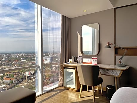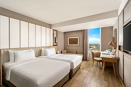 At Swiss-Belhotel Solo, exceptional service and top-notch amenities create a memorable experience for guests. Complimentary internet access is available in the hotel to ensure you stay connected during your visit.Arrange your trips to and from the airport using the hotel's convenient transportation services booking.Amenities at taxi offered by Swiss-Belhotel Solo simplify the organization of your excursions, tourist activities, and other adventures in Surakarta.Complimentary parking is available for guests.Continuously receive the support you require through front desk amenities such as concierge service, express check-in or check-out, luggage storage and safety deposit boxes.Always look your best in your preferred attire with the dry cleaning service and laundry service provided at Swiss-Belhotel Solo.Craving relaxation? In-room amenities such as 24-hour room service, room service and daily housekeeping allow you to maximize your time spent inside the room.For the health and well-being of all guests and staff, smoking is restricted exclusively to assigned zones.Accommodations come equipped with all the conveniences required for a restful night's slumber.A selection of rooms feature linen service, blackout curtains and air conditioning to ensure your comfort and convenience.A few accommodations at Swiss-Belhotel Solo also include unique design elements like a separate living room.A few chosen rooms are equipped with television and cable TV to ensure guest amusement.In certain rooms, the hotel offers visitors access to a refrigerator, bottled water, a coffee or tea maker, instant coffee, instant tea and mini bar.In the hotel, certain guest bathrooms come equipped with essential bathroom amenities, such as a hair dryer, toiletries and bathrobes, ensuring a comfortable stay for guests. A delightful breakfast is the perfect way to begin your day, and at Swiss-Belhotel Solo, you can always indulge in a scrumptious meal on-site.All adore a delightful cup of coffee! An on-site coffee shop ensures you can relish a cup of authentic, freshly-brewed coffee every morning -- or whenever you desire it.Allow your journey to be free from the pangs of hunger! On-site eateries offer delicious and accessible meal choices.At Swiss-Belhotel Solo, guests with diverse dietary needs are accommodated by offering options like halal among the different types of cuisine. An evening spent at hotel's bar can offer as much enjoyment as venturing out with your fellow travelers.At Swiss-Belhotel Solo, guests can take pleasure in the delightful recreational amenities provided for their entertainment.Conclude your days in complete tranquility by paying a visit to massage and spa for ultimate relaxation. At Swiss-Belhotel Solo, a wide array of amenities guarantees a fulfilling experience throughout your visit. Make your holiday truly memorable by taking a rejuvenating plunge into the pool.At the hotel fitness center, you have the option to engage in your daily exercise routine or simply alleviate your jet lag by breaking a sweat.