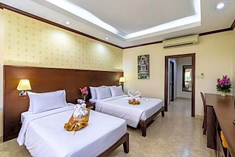 Thai Garden Resort Pattaya biedt een onberispelijke service en alle benodigde faciliteiten voor bezoekers. Blijf in contact met uw reisgenoten dankzij gratis wifi tijdens uw hele verblijf. Om uw aankomst en vertrek te vergemakkelijken, kunt u voorafgaand aan het inchecken een luchthaventransfer reserveren. Komt u met de auto, dan kunt u gebruikmaken van de gratis parkeergelegenheid op het terrein van het hotel. Het hotel biedt receptiefaciliteiten zoals een conciërgeservice, bagageopslag en kluisjes om een comfortabel verblijf voor gasten te garanderen. Of u nu voor een langer verblijf komt of gewoon schone kleding nodig heeft, het hotel zorgt ervoor dat uw dierbare reiskleding brandschoon en toegankelijk blijft dankzij de handige wasservice op het terrein. Uw verblijf zal comfortabel zijn dankzij de roomservice en dagelijkse schoonmaak op de kamer, voor uw ontspanning en plezier. Roken is uitsluitend toegestaan in de door het hotel aangewezen rookzones. Om maximale ontspanning te garanderen, hebben de kamers een uitnodigend design en zijn ze uitgerust met alle basisbehoeften, wat zorgt voor een heerlijke verblijfservaring. Om een aangenaam verblijf te garanderen, zijn de kamers in het hotel voorzien van linnenservice, verduisteringsgordijnen en airconditioning, allemaal ontworpen met uw gemak in gedachten. In Thai Garden Resort Pattaya zijn verschillende kamerindelingen beschikbaar, met een aparte woonkamer en in sommige kamers een balkon of terras. In een aantal kamers kunnen gasten genieten van een vleugje amusement met de dagelijkse krant, televisie, videostreaming op de kamer en kabeltelevisie voor hun entertainmentbehoeften. In bepaalde kamers is een koelkast, mineraalwater, een koffie- of theezetapparaat, oploskoffie en oplosthee aanwezig. Omdat badkamerfaciliteiten belangrijk zijn voor de tevredenheid van gasten, biedt het hotel in een aantal geselecteerde kamers een föhn, toiletartikelen en badjassen aan. Begin elke dag met een heerlijk gratis ontbijt in Thai Garden Resort Pattaya. Wat dacht u van een heerlijke kop koffie om elke dag van uw vakantie te beginnen? Geniet in het hotel van de verkwikkende smaak van een vers gezette, uitstekende koffie. De diverse uitstekende maaltijden in het hotel zorgen ervoor dat er altijd aantrekkelijke en gemakkelijk toegankelijke opties beschikbaar zijn. Mis bij aankomst de bar niet voor aangenaam avondentertainment. De hele dag door kunt u deelnemen aan de leuke activiteiten van Thai Garden Resort Pattaya. Ontspan elke dag moeiteloos met een massage, gunstig gelegen in het hotel. Ontspan bij het zwembad van het hotel en geniet van een ontspannen moment. Geniet van een verfrissend drankje in de buitenlucht aan de poolbar van het hotel, terwijl u geniet van uw favoriete drankje. Gasten die graag hun conditie op peil houden tijdens hun vakantie, kunnen terecht in het fitnesscentrum van het hotel.