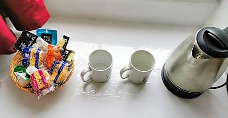 The family room features a shared bathroom equipped with a shower and a hairdryer. This family room provides a tea and coffee maker, a flat-screen TV and a quiet street view. The unit offers 2 beds.