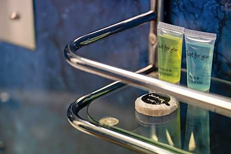 - Acrylscherm tussen gasten en personeel in de belangrijkste contactgebieden