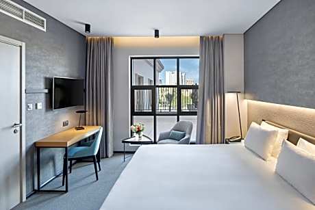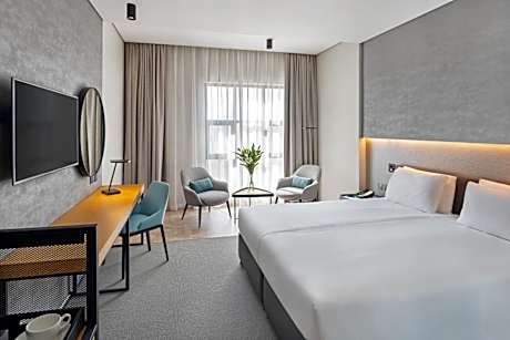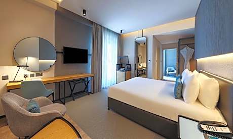 This double room features a king sized bed or two twin beds, a seating area, a coffee station, a mini-bar, soundproofing and satellite TV.