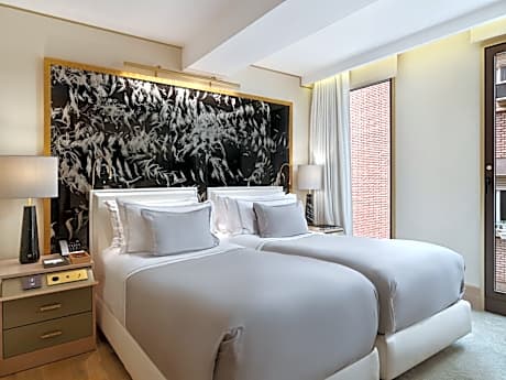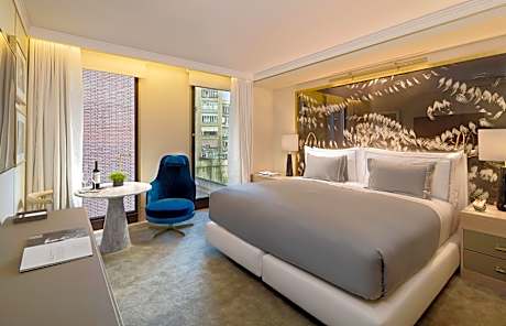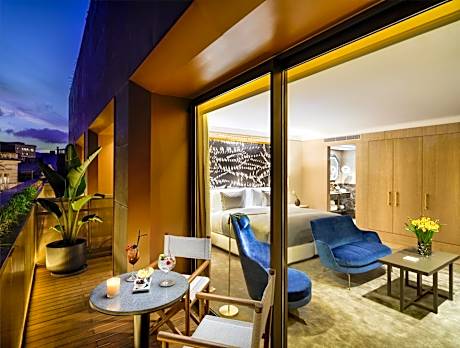 Fitted with parquet floor, this elegant room comes with 1 extra-large double bed and a spacious marble bathroom with a rainfall shower. There is a 55-inch smart TV with international channels, a media hub with international plug sockets and a Nespresso Coffee Machine.