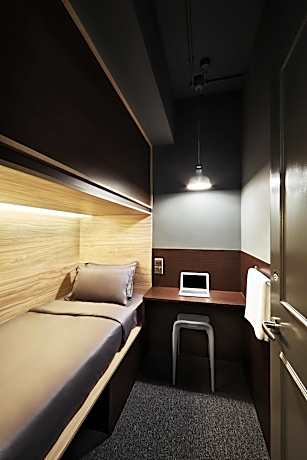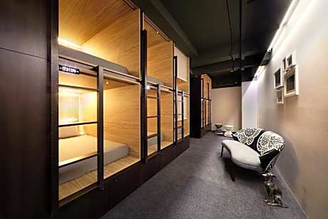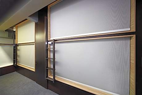 This air-conditioned female dormitory features a side entrance for each capsule. Capsules are equipped with a personal reading light and an individual power socket. Beds are equipped with 300-count cotton sheets and a duvet. Bathroom facilities are shared. This dorm is located on a female only floor.