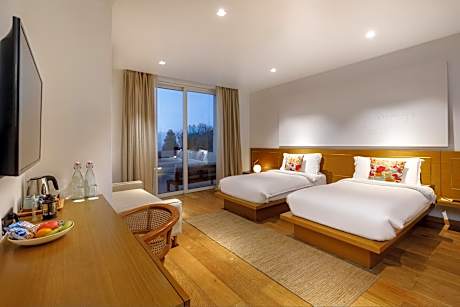 At The Terraces Resort and Spa, exceptional service and top-notch amenities create a memorable experience for guests.Complimentary internet access is available in the resort to ensure you stay connected during your visit.Arrange your trips to and from the airport using the resort's convenient transportation services booking. Amenities at car hire offered by The Terraces Resort and Spa simplify the organization of your excursions, tourist activities, and other adventures in Kathmandu.Complimentary parking is available for guests. Continuously receive the support you require through front desk amenities such as concierge service, express check-in or check-out, luggage storage and safety deposit boxes. At the resort, their tours can even assist you in booking tickets and securing reservations for leisure activities and adventures.Chilly nights become more delightful than balmy ones, as you snuggle near the resort's inviting hearth.At the resort, utilize the convenient laundry service to maintain your preferred travel attire fresh, allowing you to pack lighter. Craving relaxation? In-room amenities such as 24-hour room service, room service and daily housekeeping allow you to maximize your time spent inside the room.For the health and well-being of all guests and staff, smoking is restricted exclusively to assigned zones.Accommodations come equipped with all the conveniences required for a restful night's slumber. A selection of rooms feature linen service, blackout curtains and air conditioning to ensure your comfort and convenience. A few accommodations in The Terraces Resort and Spa incorporate separate living room and balcony or terrace into their architectural arrangement.A few chosen rooms are equipped with daily newspaper, television and cable TV to ensure guest amusement. In certain rooms, the resort offers visitors access to a refrigerator, a coffee or tea maker, bottled water, instant coffee, instant tea and mini bar.In the resort, certain guest bathrooms come equipped with essential bathroom amenities, such as a hair dryer, toiletries and bathrobes, ensuring a comfortable stay for guests. At The Terraces Resort and Spa, each day commences with a scrumptious breakfast offered at no additional cost. All adore a delightful cup of coffee! An on-site coffee shop ensures you can relish a cup of authentic, freshly-brewed coffee every morning -- or whenever you desire it.Allow your journey to be free from the pangs of hunger! On-site eateries offer delicious and accessible meal choices.At The Terraces Resort and Spa, guests with diverse dietary needs are accommodated by offering options like halal among the different types of cuisine. An evening spent within the resort's karaoke rooms and bar may prove to be just as entertaining as venturing out with your fellow adventurers.Are you inclined to prepare your own dishes? You will surely appreciate having the on-site BBQ facilities available. At The Terraces Resort and Spa, guests can take pleasure in the delightful recreational amenities provided for their entertainment. Conclude your days in complete tranquility by paying a visit to massage, hot tub, steam room and sauna for ultimate relaxation.At The Terraces Resort and Spa, a wide array of amenities guarantees a fulfilling experience throughout your visit. Make your holiday truly memorable by taking a rejuvenating plunge into the pool.At The Terraces Resort and Spa, the poolside bar provides an excellent incentive to enjoy extended hours in your swimwear.