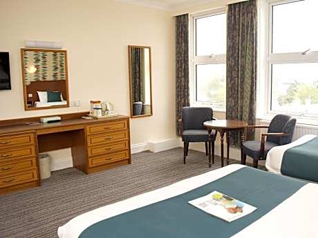 Just 3 minutes’ walk from Torquay seafront, the Victoria Hotel offers fine period features and extensive leisure facilities including indoor and outdoor pools, a luxury spa, leisure complex and gym. The pretty harbor and town center are within 10 minutes’ walk. The Victoria’s comfortable bedrooms have a private bathroom, TV, hairdryer and tea coffee making facilities. There are also 16 self-catering apartments and free Wi-Fi. Buffet-style breakfasts, including full English or continental choices are served daily. The elegant restaurant with glass-domed roof offers table d'hôte evening meals and a la carte choices. The Windsor Bar has a south-facing terrace and afternoon tea is available in the conservatory. Leisure facilities include a sauna, steam room and hot tub and there is also a games area with 10-pin bowling, pool and ping-pong tables and a children’s playground. A daily activities program includes snorkeling and aerobics. The Starlight Bar in the neighboring Derwent Hotel hosts vibrant evening entertainment, with a mix of cabaret and live acts.