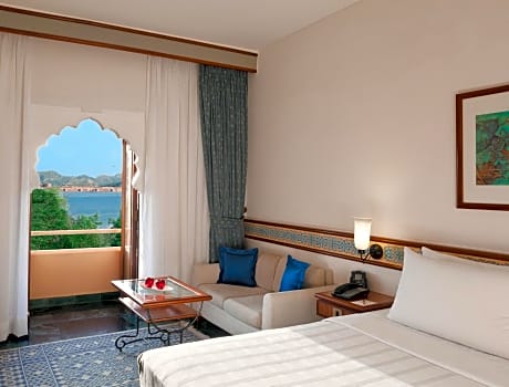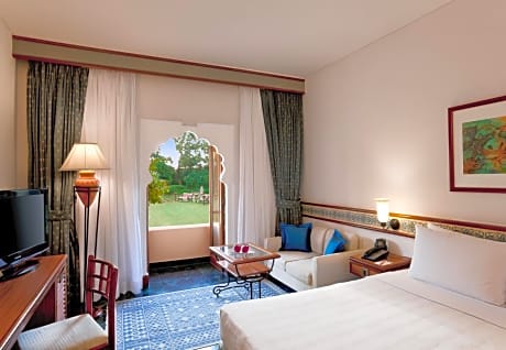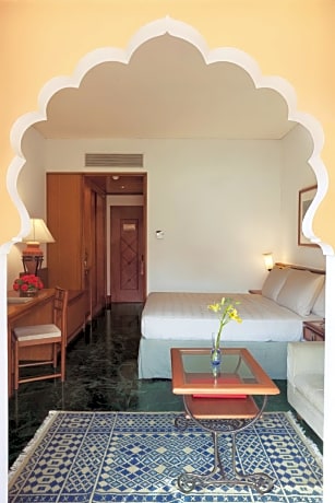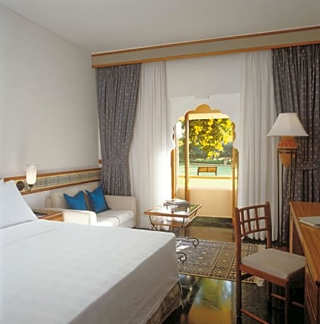 Luxurious 5-star accommodations and service awaits at Trident Jaipur, which features breathtaking views of peaceful Mansagar Lake and the Aravalli Range. It houses a large outdoor pool with loungers, pool bar and fitness facilities. Free WiFi is available in the rooms of the property. Spacious rooms open out to private balconies overlooking the lake or the hotel’s landscaped grounds. In-room comforts include a flat-screen TV, a bathtub and separate shower. Trident Jaipur is 1 mi from majestic Nahargarh Fort and 2.5 mi from Jal Mahal and lively Bapu Bazaar. It has free parking and is 13 mi from Jaipur Airport. The Jaipur Railway Station is 6.2 mi. Offering 24-hour reception, staff can provide concierge and childcare services. The resort also has a business center, a children’s playground and club, as well as, barbecue facilities. Poolside barbecues can be enjoyed at The Veranda while Jal Mahal offers hearty buffets in elegant Indian-style interiors. Mansagar is ideal for an after-meal cocktail or nightcap. A mandatory meal supplement of INR 6400 and INR 8320 per person is applicable for guests staying on 24th December and 31st December respectively, payable at the hotel directly.