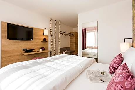 The TRIHOTEL Rostock – Adults Only is more than a hotel: It's a place to arrive, recharge, and feel good. Nestled in the Swiss forest, just 5 minutes from Rostock's city center, you'll find two restaurants, a bar with a live performance stage, and a 5.9 ft² wellness paradise. Free Wi-Fi is available in all areas. The rooms are modernly designed and offer everything you need for your personal time out: from a cozy retreat to special categories with extra comfort. The wellness area features saunas, relaxation areas, a pool, and a snack bar. You can also book massages, beauty treatments, or romantic spa suites for your very own private moments. Culinary delights await you: In the "5 Elements" restaurant, regional cuisine meets modern lightness with a terrace overlooking the forest. The Rocktheater Bar combines culture and enjoyment: pizza, snacks, cocktails, and live events. At TRIBEHOLZ, you can enjoy light lunch and dinner snacks in the feel-good area and on a stylish outdoor terrace. Thanks to its proximity to the Rostock-Süd (A19) motorway exit, the TRIHOTEL is easily accessible. Perfect for short trips and spontaneous getaways. Important note: Economy rooms do not include access to the spa area (pool & sauna).
