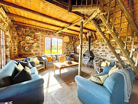 Known as the 'River House', this open-plan accommodations overlooks the Tugela River. There is a bedroom with and open plan private bathroom on the lower level and a lofted sleeping area. There is a separate toilet and shower downstairs too. This unit is powered by solar energy, is fenced off and pet friendly with river access.