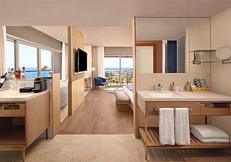 The pool with a view is the standout feature of this double room. The spacious double room features air conditioning, a mini-bar, a balcony with sea views as well as a private bathroom boasting a shower. The unit has 1 bed.