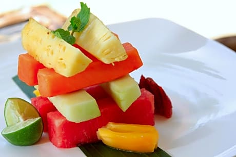Overlooking the garden and pool, room features a fan, private balcony and shower facilities.
