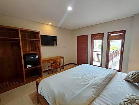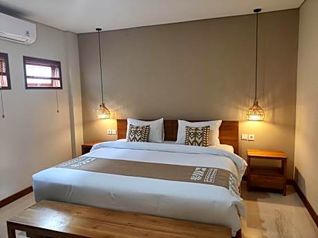 Villa Lovecho is a 2- story property with a private pool and lush landscaped garden and 1 room unit Building that has 5 rooms with swimming pool, located a 5 - minute stroll from Echo beach. A 20-minute car ride from Villa Lovecho takes guests to trendy Seminyak area where many shopping and fine dining options can be found. The lively Kuta area is 30 minutes’ drive away, while it takes 45 minutes to drive to Ngurah Rai International Airport from the property. Fitted with minimalist-style interiors, the spacious villa has a flat-screen TV, dining area and a kitchenette with a fridge. The living area comes with a sofa set and opens out to the pool completed with strong wi-fi connection. Each air-conditioned bedroom includes a private bathroom with shower facilities. Beside the private villa there is room unit building that has deluxe room, twin bed and superior room completed with a swimming pool. Each room has smart TV with entertainment, air-conditioned, work desk, modern cupboard and private bathroom with the combination of beige marble and natural wood. Villa’s staff can arrange car rental and airport pick-up at extra charges. Guests also enjoy the convenience of on-site laundry service and free private parking. In-villa dining is possible with room service.