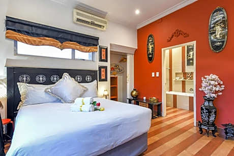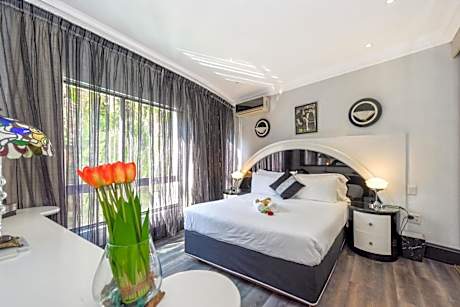 Villa Simonne is located in Houghton in Johannesburg. This a vintage, themed boutique hotel is within easy reach of the the M1 highway, Rosebank and Sandton CBDs, and is on the Gautrain bus route. From Hollywood to Marrakesh each of the spacious suites has an individual décor based on one of the world’s great cities. All rooms are equipped with refrigerator, microwave and kettle. Breakfast is served every morning and an a-la-carte menu is available for lunches and dinners in any of the Villa’s recreation areas. The hotel has a garden bar and a games room with pool table. Guests can relax in the lush gardens, which hosts an amphitheater. There is a 1920s Piano Lounge, a pool terrace and sauna. Airport transfers are available on request, and the hotel also arranges spa, wellness and cosmetic treatments. The estate offers an exclusive venue for themed private parties, weddings and corporate functions. Free WiFi is available throughout the property. Killarney Mall is 5-minute walk from Villa Simonne and Johannesburg Zoo and the Zoo Lake, Houghton Golf Club, and Virgin Active Health Club are also nearby.