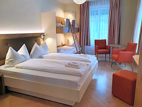 The historic Waldhotel Unspunnen is located in wooded surroundings with panoramic views to the famous mountains Eiger, Mönch and Jungfrau. Offering free WiFi and free parking, it is reachable within a 20-minute walk or a 4-minute drive from the Interlaken-West train station. It is an ideal base for excursions to the mountains, the lakes or any adventure activities. The local host (4th generation) and the staff have good knowledge about the area and are happy to provide advice about what to do. You can enjoy tasty Swiss food at the hotels Schnadis restaurant on the sunny terrace offering magnificent view to the mountains. A kitchen with self-cooking facilities as well as a self-washing is available. Guests are given the Interlaken Guest Card at the Waldhotel which entitles them to use the public transportation within Interlaken for free. The nearest bus stop is called „Heimwehfluh“ and it takes only 8 minutes on foot from or to the hotel.
