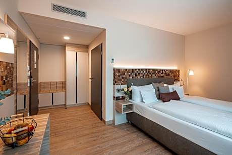 The double room provides soundproof walls, a wardrobe, as well as a private bathroom featuring a walk-in shower and a hairdryer. A sofa, a flat-screen TV, a safe deposit box and heating are provided in this double room. The unit offers 1 bed.