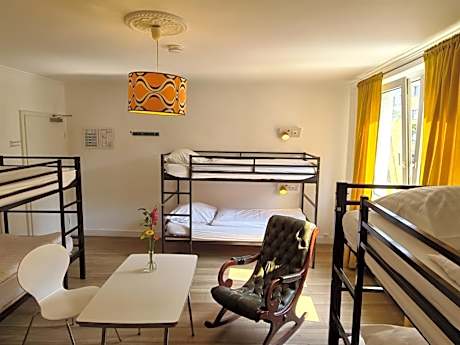 Bed in shared dormitory room with private bathroom facilities.