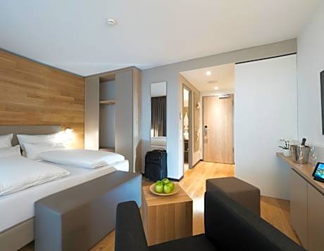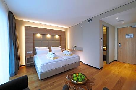 The double room offers a wardrobe, a safe deposit box, as well as a private bathroom featuring a walk-in shower and a hairdryer. This double room features parquet floors, heating and a flat-screen TV with satellite channels. The unit offers 1 bed.