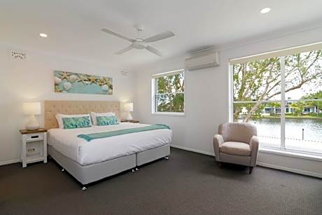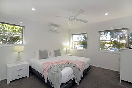 Noosa Entrance offers luxury townhouses with direct access to the Noosa River. The resort offers 4 pools, kayak and SUP hire and is within a short walk to Noosaville’s restaurants and shops. The townhouses at the Noosa Entrance Waterfront Resort feature private laundry facilities and fully-equipped kitchens. Guests can take a swim in the Noosa Entrance Waterfront’s lagoon pool, tropical wading pool or heated pool. Relax by the canal, or on one of the resort’s 4 private jetties. Noosa Entrance Waterfront Resort is a 30-minute drive from Maroochydore Sunshine Coast Airport, and a 1.5-hour drive from the Brisbane Airport. Transfers are available to and from Maroochydore Sunshine Coast Airport. Free parking is available.