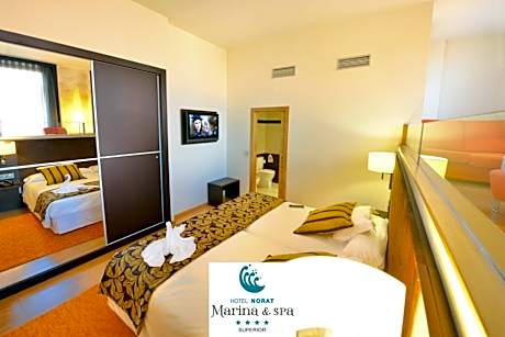 This spa hotel is located next to O Grove Harbor, just 656 feet from La Toja Island. It offers luxurious rooms with free Wi-Fi and flat-screen TV. Lanzada Beach is a 5-minute drive away. The rooms in Hotel Norat Marina & Spa have modern décor. All have air conditioning, armchairs and a full bathroom. The highlight of the Norat Marina is the Spa Center, where you can enjoy a range of relaxing treatments including hydrotherapy, saunas, hot tub and dynamic pool. It also has an elegant restaurant with an extensive wine list. The hotel has private parking, which must be booked in advance. Public parking can also be found nearby. Vigo is 25 mi away, while Santiago de Compostela is 31 mi away. A shuttle service from Vigo or Santiago Airport is available for an extra cost.