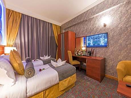At Nusk Al Madinah, exceptional service and top-notch amenities create a memorable experience for guests. Complimentary internet access is available in the hotel to ensure you stay connected during your visit.Arrange your trips to and from the airport using the hotel's convenient transportation services booking. Continuously receive the support you require through front desk amenities such as luggage storage and safety deposit boxes. At the hotel, utilize the convenient dry cleaning service to maintain your preferred travel attire fresh, allowing you to pack lighter. Craving relaxation? In-room amenities such as 24-hour room service, room service and daily housekeeping allow you to maximize your time spent inside the room.Additionally, you can obtain minor travel essentials and miscellaneous items at the convenience stores without departing from the Nusk Al Madinah.Due to health concerns, smoking is strictly prohibited within the entire premises of hotel.For the health and well-being of all guests and staff, smoking is restricted exclusively to assigned zones. Accommodations come equipped with all the conveniences required for a restful night's slumber.A selection of rooms feature linen service and air conditioning to ensure your comfort and convenience. A few chosen rooms are equipped with television and cable TV to ensure guest amusement. In certain rooms, the hotel offers visitors access to a refrigerator, a coffee or tea maker, bottled water and mini bar. In the hotel, certain guest bathrooms come equipped with essential bathroom amenities, such as a hair dryer, toiletries and bathrobes, ensuring a comfortable stay for guests. A delightful breakfast is the perfect way to begin your day, and at Nusk Al Madinah, you can always indulge in a scrumptious meal on-site. All adore a delightful cup of coffee! An on-site coffee shop ensures you can relish a cup of authentic, freshly-brewed coffee every morning -- or whenever you desire it. Allow your journey to be free from the pangs of hunger! On-site eateries offer delicious and accessible meal choices.