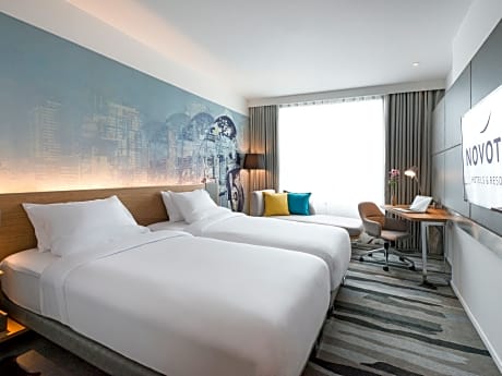 Novotel Bangkok Sukhumvit 4 offers top-notch services and amenities, ensuring guests experience utmost comfort.Share your photos and respond to emails at your convenience, thanks to the free Wi-Fi internet access offered by hotel.Should you require transportation to or from the airport, hotel is able to organize it prior to your arrival date. Shuttle offerings at the hotel enhance the ease of discovering Bangkok. Visitors can take advantage of complimentary parking directly at the hotel. Reception services such as concierge service, luggage storage and safety deposit boxes are available to accommodate your requirements. Traveling with minimal luggage is achievable at Novotel Bangkok Sukhumvit 4 due to the hotel's laundry service ensuring your garments stay fresh. Room amenities like room service and daily housekeeping contribute to making a perfect selection for your stay. The hotel maintains a completely smoke-free zone, providing a breathable atmosphere.Smoking is limited to specified smoking zones. Each accommodation at Novotel Bangkok Sukhumvit 4 is thoughtfully created and adorned to provide visitors with a comfortable, home-like atmosphere. In certain rooms, the hotel offers linen service, blackout curtains and air conditioning for guest convenience and satisfaction.In select rooms, guests at the hotel can enjoy top-notch in-room entertainment with television and cable TV available for their convenience. Rest assured, in a few chosen rooms, you will find the convenience of a refrigerator, bottled water, a coffee or tea maker, instant coffee and mini bar at your disposal.Novotel Bangkok Sukhumvit 4 offers a hair dryer, toiletries and bathrobes in the restrooms of specific accommodations. Embark on your holiday experience in the most ideal manner. Commence each morning of your visit with an on-site breakfast.Experience the delight of a fresh morning by savoring excellent coffee at the cafe situated within hotel. Should you prefer not to venture out for a meal, the enticing culinary choices at hotel are always available for your satisfaction. Experience an unforgettable evening with your fellow travelers just a short distance away, at hotel's bar. Novotel Bangkok Sukhumvit 4 provides a superb assortment of leisure amenities for guests to enjoy. Each day at hotel, immerse yourself in the invigorating waters of the pool, perfect for a rejuvenating plunge or a series of revitalizing laps.Bypass the formal attire and choose a laid-back mixed drink or brew at hotel's waterside lounge.For individuals who don't want to skip their exercise routine, visiting the hotel fitness center ensures you maintain your vitality and wellness.
