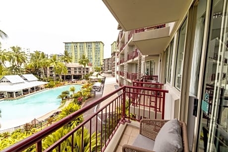 The Novotel Oasis is a 4.5 star resort featuring a gorgeous lagoon pool, complete with a sandy beach, children's pool and a swim-up bar. The hotel is a short walk from the Esplanade, Cairns city center and the Reef Casino. Relaxed and laid back, the Novotel Cairns Oasis Resort provides easy access to the many attractions of the region such as the Great Barrier Reef and Daintree Rainforest. Cairns Convention Center is a 5-minute drive away and Cairns Railway Station is a 15-minute walk. All air-conditioned rooms feature a private balcony, broadband internet and a flat-screen TV. They also offer a mini-bar and tea and coffee making facilities. Whether you seeking a casual or more formal fine dining restaurant experience, there are a range of options at Novotel Cairns Oasis Resort.