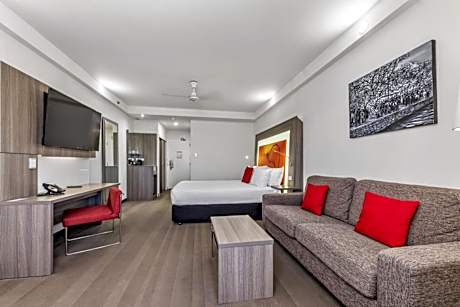 Conveniently located on the Esplanade, Novotel Darwin CBD features a swimming pool and an atrium with a spectacular indoor tropical rainforest, complete with cascading vines, palm trees and a waterfall. It is just a short walk from Mitchell Street's cafes, bars and nightlife options. Novotel Darwin CBD is within 5 minutes' drive of Darwin Convention Center, Skycity Darwin Casino and Mindil Beach. The restaurant has been renamed from Zest Restaurant and Terrace to Esplanade Restaurant and Terrace Open for Breakfast brunch and dinner. Each of the air-conditioned suites offers a work desk, a TV with satellite channels, a refrigerator and tea/coffee making facilities. All include a private bathroom with a shower, hairdryer and free toiletries.