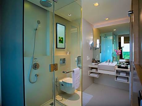 Experience an abundance of unparalleled facilities and features at Novotel Hyderabad Airport. Maintain seamless communication using the complimentary Wi-Fi at hotel. Effortlessly arrange transportation to and from the airport using the hotel's airport transfer services. Discovering Hyderabad becomes even more accessible through the taxi and car hire amenities provided at the hotel. For visitors traveling by automobile, complimentary parking is available. During your stay at this fantastic hotel, the attentive front desk personnel can provide you with a range of amenities such as concierge service, express check-in or check-out, luggage storage and safety deposit boxes. At the hotel, utilize the on-site dry cleaning service and laundry service to maintain your beloved travel attire fresh, allowing you to bring fewer clothes. Craving relaxation? Make the most of your stay at the Novotel Hyderabad Airport with convenient amenities like 24-hour room service, room service and daily housekeeping at your disposal. For visitors wishing to smoke, designated smoking zones can be found.At Novotel Hyderabad Airport, every guestroom is provided with convenient amenities and fittings to ensure a comfortable stay. Enhance your experience at hotel with the knowledge that certain rooms are equipped with linen service, blackout curtains and air conditioning for your convenience. A few accommodations within Novotel Hyderabad Airport offer unique design elements such as a separate living room. Certain rooms boast in-room amusement features such as television and cable TV, offering guests an enjoyable stay. In select rooms within the hotel, a refrigerator, bottled water and mini bar is available to cater to your requirements when desired. It is worth noting that certain guest bathrooms feature a hair dryer, toiletries and towels for your convenience.Be sure to stop by the elegant executive lounge where you can experience the lavish amenities and ambiance. Begin your day with a scrumptious on-site breakfast available each morning at Novotel Hyderabad Airport.Begin your day feeling refreshed and invigorated as you enjoy a delightful cup of quality coffee available at the cafe situated within the hotel. At the hotel, an assortment of easily accessible and delicious meal choices are available to satisfy your appetite whenever it strikes. At Novotel Hyderabad Airport, they are committed to catering to your unique requirements. They offer a variety of meal choices, encompassing halal alternatives for those with special dietary preferences.Enjoy an entertaining evening with your fellow travelers at the hotel's bar.At the hotel, discerning guests can also enjoy on-site culinary facilities like BBQ facilities tailored to their preferences.During your stay at hotel, an array of engaging activities and amenities guarantees a delightful experience.Conclude your holiday perfectly with a visit to massage, hot tub, steam room, spa and sauna on your final days. Be sure to drop by the pool at hotel at least once during your stay. Discover the fitness amenities at hotel to maintain your health and strength during your getaway.