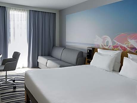 The Novotel Le Havre is located on the waterfront at the Vauban Docks, near the center of Le Havre and offers modern and comfortable accommodations. It is a 30-minute drive from Honfleur and Etretat, and Deauville is 25 mi away. This modern hotel features contemporary guest rooms equipped with modern private bathrooms, satellite TV and a Wi-Fi internet connection. Enjoy simple, tasty, healthy and balanced cuisine at the Novotel Café. The restaurant is air-conditioned and has a terrace. Room service is also available 7 days a week. Guests also have access to two public car parks and a fitness center making it well suited for a business trip or a holiday in Le Havre with your partner or family.