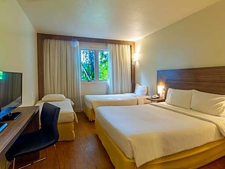 This 4-star hotel in Manaus, Amazonas provides spacious rooms with free internet access, as well as an outdoor swimming pool, a gym and tennis courts. Free parking is available. Rooms at the Novotel Manaus include a minibar, a safe and a private bathroom. The Manaus serves local and international cuisine at its restaurant. The hotel also offers 24-hour room service. Guests can relax at the outdoor swimming pool, which is surrounded by lounge chairs and a tropical garden. A pool bar serving refreshing drinks is also available. The Manaus also features a multilingual tour desk, where guests can arrange day trips.