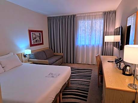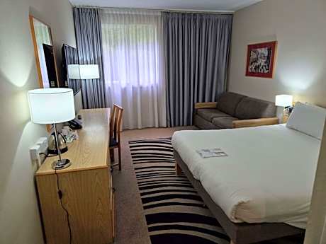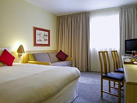 This modern hotel is just off the M60 motorway, 10 miles from Manchester city center. It has free secure parking and good family facilities. The Novotel Manchester West is in the historic village of Worsley. Each large room with attached bathroom has a sofa, a work area and a TV with a library of movies and music. You can also listen to your own MP3 player. The Novotel Manchester has a bar, room service, a terrace and a garden with a children's play area. Elements restaurant is open for breakfast and evening meals daily. Up to 2 children (under 16 years) can stay free (with breakfast) when sharing a room with adults.