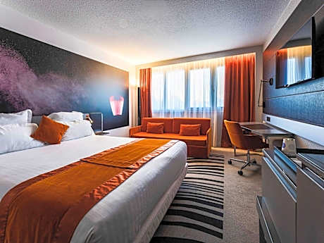 This Novotel Hotel is located in the center of the Charbonnière Technology Park, just a 10-minute drive from Orléans. It has an outdoor heated swimming pool, a children’s playground and meeting rooms. Private parking is available on-site and is free of charge. Each guest room at the Novotel Orleans Charbonniere is equipped with free WiFi, a flat-screen TV and private bathrooms Guests can enjoy regional cuisine at the Charbonniere Novotel’s restaurant. There is also a bar with a large flat-screen TV and an outdoor terrace. The Orleans Charbonniere Novotel Hotel features a 24-front desk and is easily accessible by the A10 and A19 Motorways.