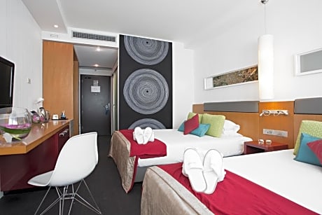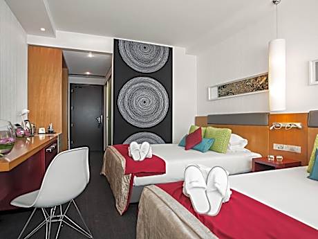 The Novotel Roma Eur is set in Rome's EUR district, within walking distance of the PalaLottomatica concert venue. All rooms have air conditioning, Wi-Fi access, and satellite TV. A free gym is available to guests and is open 24 hours a day. The building was designed by the famous GPAIA architecture study of Toronto. The interiors are modern and stylish, made with steel and wood. The rooms are extremely colorful. The Novotel Roma Eur hotel has an on-site restaurant serving national specialties and international dishes. At breakfast you can choose from the continental or American options. All meals can be delivered to your room. A free internet point is available in the business center, 24 hours a day.