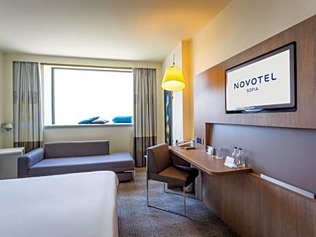 The stylishly and contemporary designed Novotel Sofia is adjacent to The Mall on Tsarigradsko Shose Boulevard, 33 feet from the European Trade Center and 15 minutes walking distance from Sofia Tech Park and Arena Armeec. It showcases a fitness center, a steam bath, and a restaurant with summer terrace serving international cuisine. Free high-speed WiFi connection is available. Sofia Airport and the center of the city are a 10-minute drive away, with a shuttle service to the airport available for an additional fee. The spacious, air-conditioned rooms at the Novotel Sofia Hotel feature a flat-screen LED TV with satellite channels, free coffee and mineral water and a modern-style bathroom. Most rooms offer panoramic views of the city or Vitosha Mountain. The Sofia Novotel features a 24-hour reception, a business center, and a children’s playground. Massages are available on request. Free private parking is provided for guests. The Inter Expo Center is 2 mi away and can be easily reached by car or taxi.