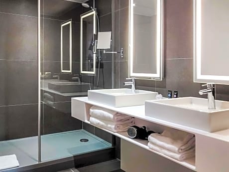 Set on the banks of the River Lez, Novotel Suites Montpellier Antigone features an outdoor swimming pool and a fitness center. It is located a 10-minute walk from Montpellier City Center and a 5-minute walk from Place de l'Europe tram stop. All air-conditioned rooms and suites at the Novotel Suites Montpellier Antigone are equipped with a flat-screen satellite TV and desk. The private bathrooms have a bath or shower, free toiletries and a hairdryer. Breakfast is served every morning at the hotel. Guests can enjoy a drink in the hotel bar while reading the newspapers provided. The 24-hour Boutique Gourmande sells gourmet refreshments on site. Guests receive a free massage on Thursday evenings. Montpellier International Airport is just 4.3 mi away and the Montpellier Saint-Roch Train Station is a 20-minute walk away. Private parking is available on site for an additional charge.