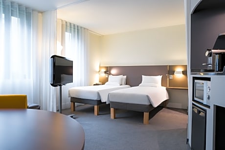 This Novotel is located in the heart of the Paris Nord 2 Business Park, just a 10-minute drive from Charles de Gaulle Airport and a 5-minute drive from Parc des Expositions Paris Nord Villepinte Exhibition Center. It offers air-conditioned and soundproofed suites with free high-speed WiFi. The flat-screen TV and satellite channels ensure your entertainment. Rooms amenities include a safe, a work desk, a sofa-bed, as well as a telephone. All suites have a kitchenette including microwave, Nespresso coffee machine, kettle and mini-bar. A private bathroom with a separate bath and shower is at your disposal. The Boutique Gourmande offers a selection of foods, desserts and drinks and is open 24 hours a day. A buffet breakast is served daily and guests are also invited to relax in the hotel bar. Additional facilities at the Novotel Suites Paris CDG Airport Villepinte include a 24-hour fitness room and a web corner. The hotel offers a shuttle service with additional charge. This service is available from Monday to Sunday, schedule is available upon request. A private car park can be provided with extra charges. This Novotel has a restaurant.