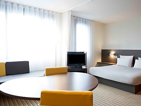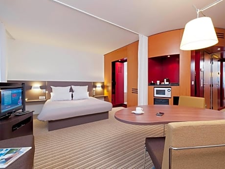 Novotel Suites is located a 3.1 mi from Paris Charles de Gaulle Airport and Parc des Expositions Paris Nord Villepinte Exhibition Center. It offers air-conditioned suites with flat-screen TVs and free internet. Each suite is equipped with a microwave, fridge and electric kettle and private bathrooms. All rooms are serviced by an elevator. To reach the hotel from the airport, a paid shuttle is available from 5:30 a.m. to 11:30 a.m. and from 5 p.m. to 11 p.m. You can also get to the terminal 3 bus station via the CDGVal then take the Express 93 line or the 27 bus. The hotel is located at the Orangerie bus stop.