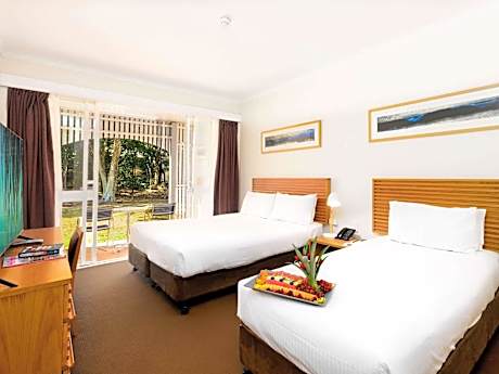 Set among tropical gardens and surrounding a private lagoon with sandy beaches, Novotel Sunshine Coast Resort offers a tranquil retreat just 4.3 mi from Sunshine Coast Airport. Guests can enjoy a variety of activities, including complimentary water sports, a refreshing outdoor pool, a relaxing spa pool, and a fully equipped gym. Dining options cater to every taste, from hearty breakfasts to grab-and-go options at the Deli. SOLA Bar & Restaurant serves up fresh, locally inspired dishes alongside a curated selection of drinks in a relaxed alfresco setting. For an elevated stay, the Overwater Bungalows and Executive Rooms, refurbished in 2021, provide contemporary comfort and style. Committed to sustainability, the resort embraces eco-friendly initiatives, including energy-efficient practices, waste reduction programs, and locally sourced ingredients to minimize its environmental impact. Family-friendly perks: Up to two children (15 years and under) stay free when sharing with parents.